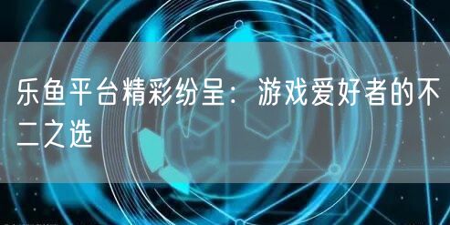 作为一个游戏爱好者,你可以在乐鱼平台上享受到无与伦比的游戏体验。该平台拥有流畅的操作界面,让你轻松上手,畅快游戏。同时,乐鱼平台还提供了丰富的社交功能,让你在游戏中结识更多志同道合的朋友,共同探索游戏的乐趣。